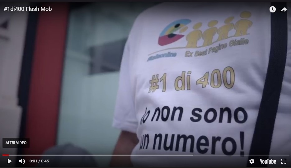 #1di400 é lo slogan che quotidianamente si ripete in 400 famiglie italiane, da quando ITALIAONLINE, azienda che ha rilevato la storica e torinese SEAT PAGINE GIALLE e che, nonostante un utile di 27 MLN di euro, la ridistribuzione di 80 MLN di euro agli azionisti e l’incentivo triennale per i manager di 7,5 MLN di euro, entro la fine del mese invierà a 400 famiglie la lettere o , forse, la mail, visto la digitalizzazione aziendale, che comunica il licenziamento collettivo e per 184 persone il trasferimento coatto presso la sede di Assago con conseguente chiusura della sede di Torino.Questo significherà che 400 famiglie vedranno modificarsi repentinamente e in modo peggiorativo la qualità della propria vita e con loro tutto ciò che gravita intorno ad un quartiere torinese che sta cercando di riqualificarsi creando benessere in un contesto post industriale (ex officine Savigliano) ed integrazione in un contesto di forte migrazione (circoscrizione 5 , borgata tesso ).Non si può creare benessere togliendo posti di lavoro e conducendo 400 famiglie verso la precarietà, se non per i più fragili, verso un percorso di esclusione sociale. Vogliamo tutelare il diritto al lavoro di 400 famiglie e che le istituzioni lavorino per creare benessere, integrazione e tutelare i diritti sociali.Desidero che questo stravolgimento sociale che riguarda la nostra città emerga e che la nostra comunità professionale prenda coscienza di un fenomeno che la coinvolgerà dal punto di vista professionale e nel mio caso anche personale, sono #1di400.