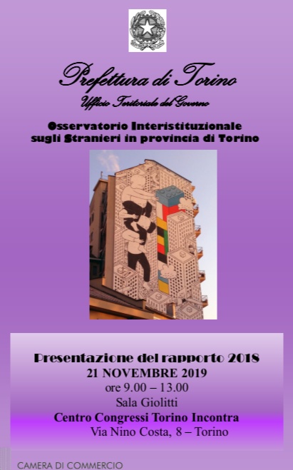 il 21 novembre 2018 alle ore 9.00, presso il CENTRO CONGRESSI TORINO INCONTRA Via Nino Costa 8 Torino, che fornisce una approfondita lettura dell’immigrazione in provincia di Torino.