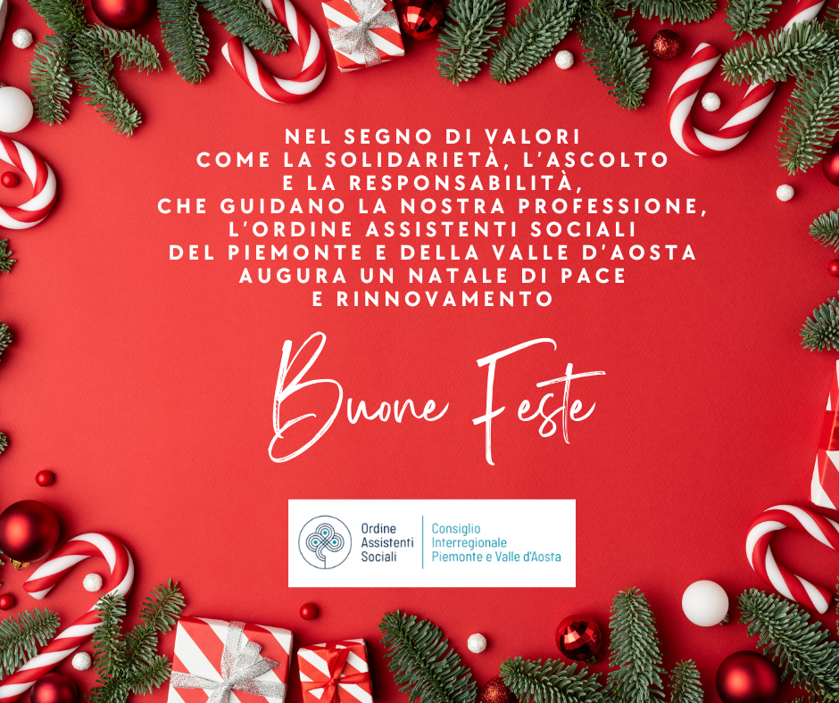 Auguri di Buone Feste dall’Ordine Assistenti Sociali Piemonte e Valle d’Aosta 23 Dicembre 2025 Il nostro augurio di Buone Feste per tutti e tutte voi. Il Consiglio Interregionale Ordine Assistenti Sociali Piemonte e Valle d’Aosta segreteria 23 Dicembre 2025 Articolo Precedente POF 2026 – Approvato il Piano Offerta Formativa 2026 dell’OAS Piemonte e Valle d’Aosta
