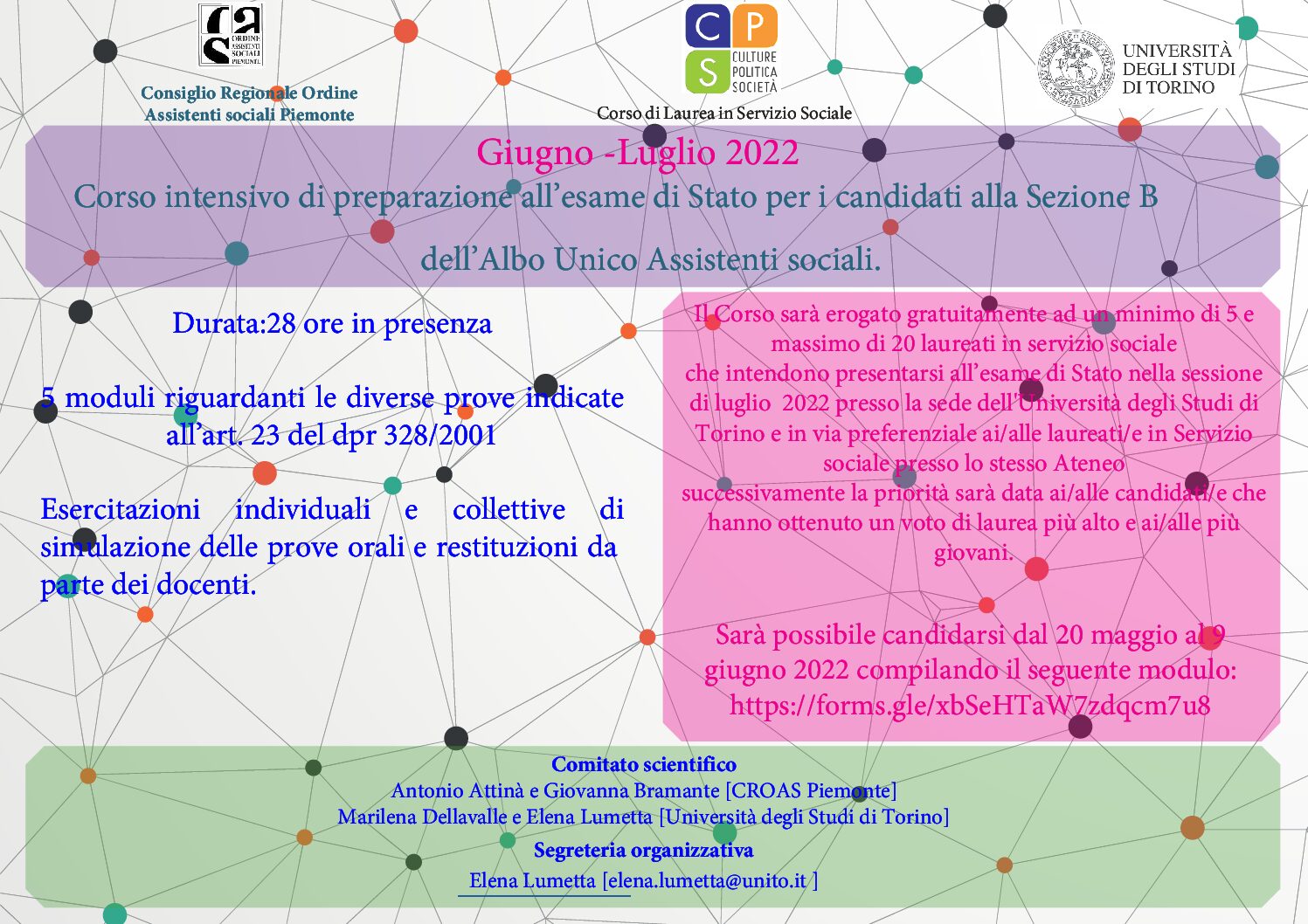 Corso intensivo di preparazione all’esame di Stato per i candidati alla Sezione B dell’Albo Unico Assistenti sociali.