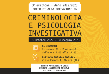 3^ edizione corso di alta formazione in “Criminologia e psicologia investigativa” – iscrizioni entro il 30 settembre 2022