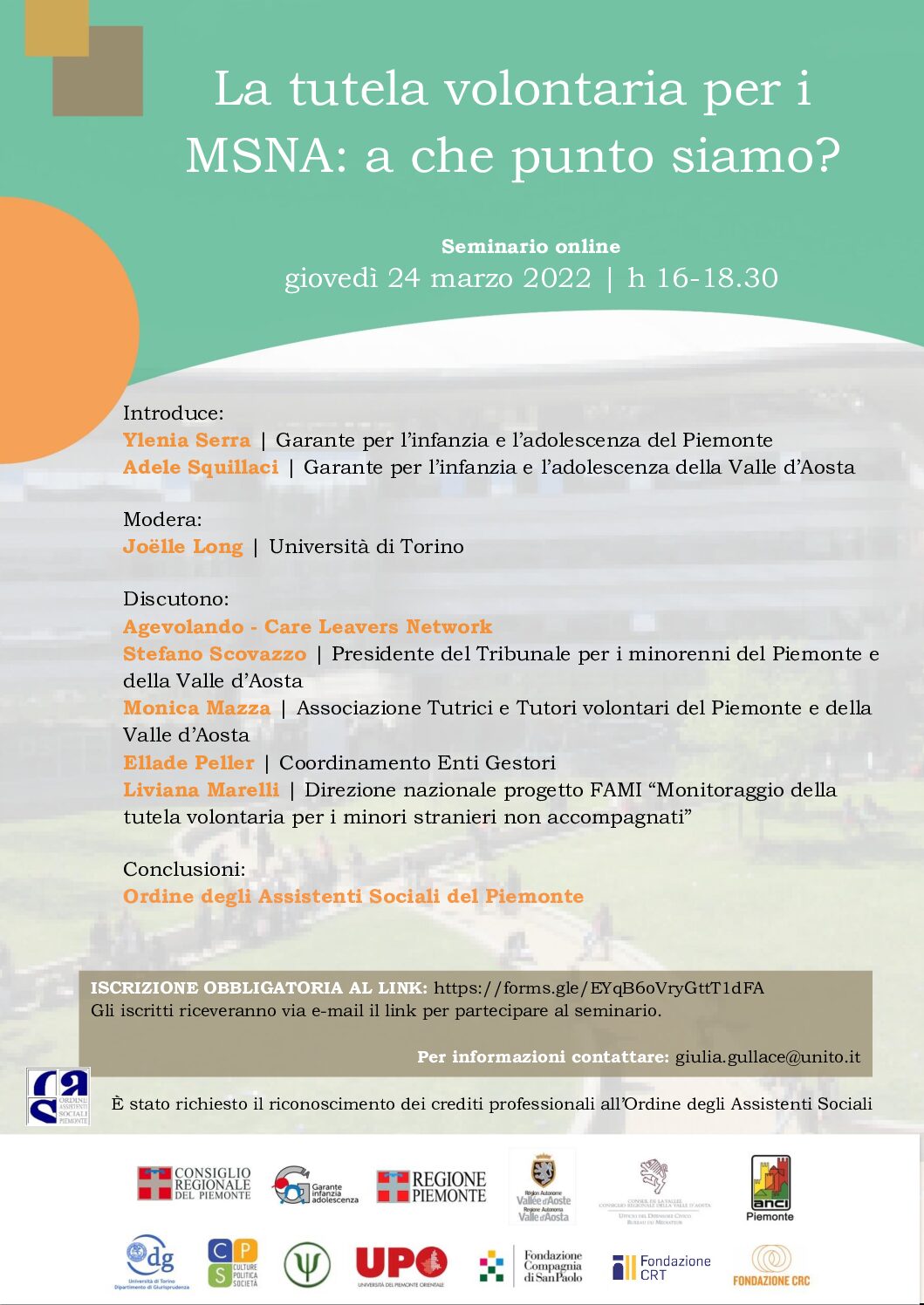 Seminario on line “La tutela volontaria per i MSNA: a che punto siamo?” giovedì 24 marzo 2022 ore 16.00-18.30