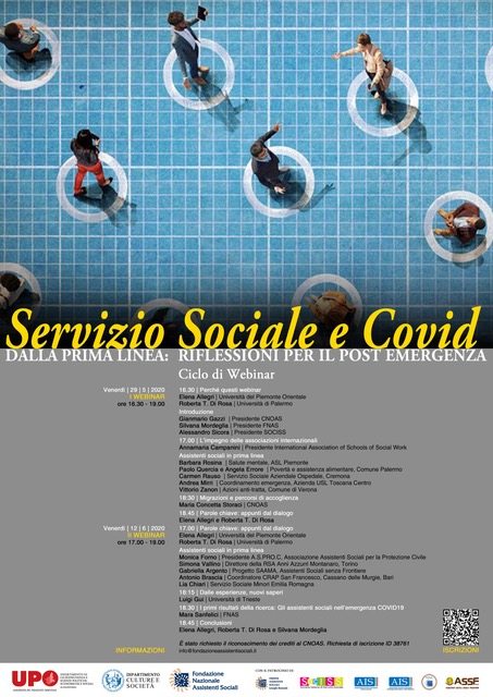 Webinar “Servizio sociale e Covid – Dalla prima linea: riflessioni per il post emergenza”, che si svolgerà il 29 Maggio e il 12 Giugno 2020