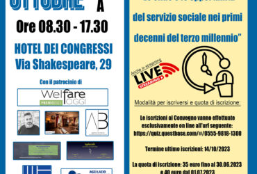L’agenzia formativa S.O.S. Servizi Sociali On Line ha organizzato e programmato il V° Convegno Nazionale titolato “Le sfide e le opportunità del servizio sociale nei primi decenni del terzo millennio”.
