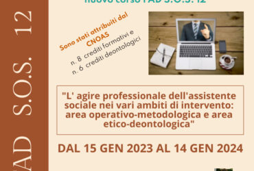 Proroga corso di formazione a distanza denominato FAD S.O.S.12 e titolato “L’agire professionale dell’assistente sociale nei vari ambiti di intervento, sia dal punto di vista operativo-metodologico che da quello etico-deontologico”