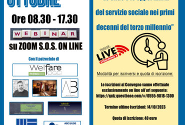 21 ottobre 2023 – Webinar S.O.S. dal titolo “V° Convegno S.O.S. Le sfide e le opportunità del servizio sociale nei primi decenni del terzo millennio”