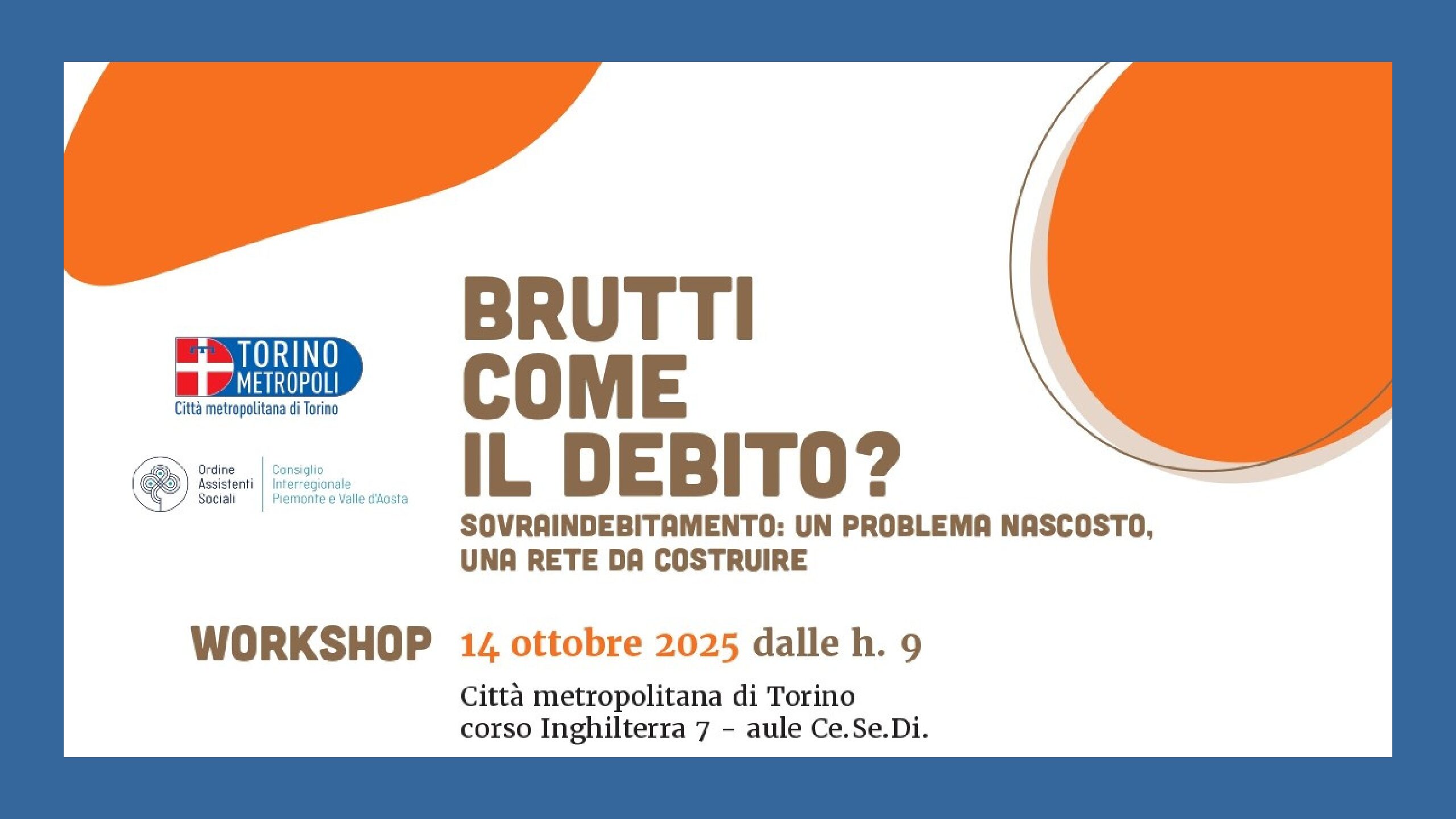 14 ottobre 2025 dalle ore 9 Ordine Assistenti Sociali e Città metropolitana organizzano workshop sul tema: “Brutti come il debito? Sovraindebitamento: un problema nascosto, una rete da costruire”