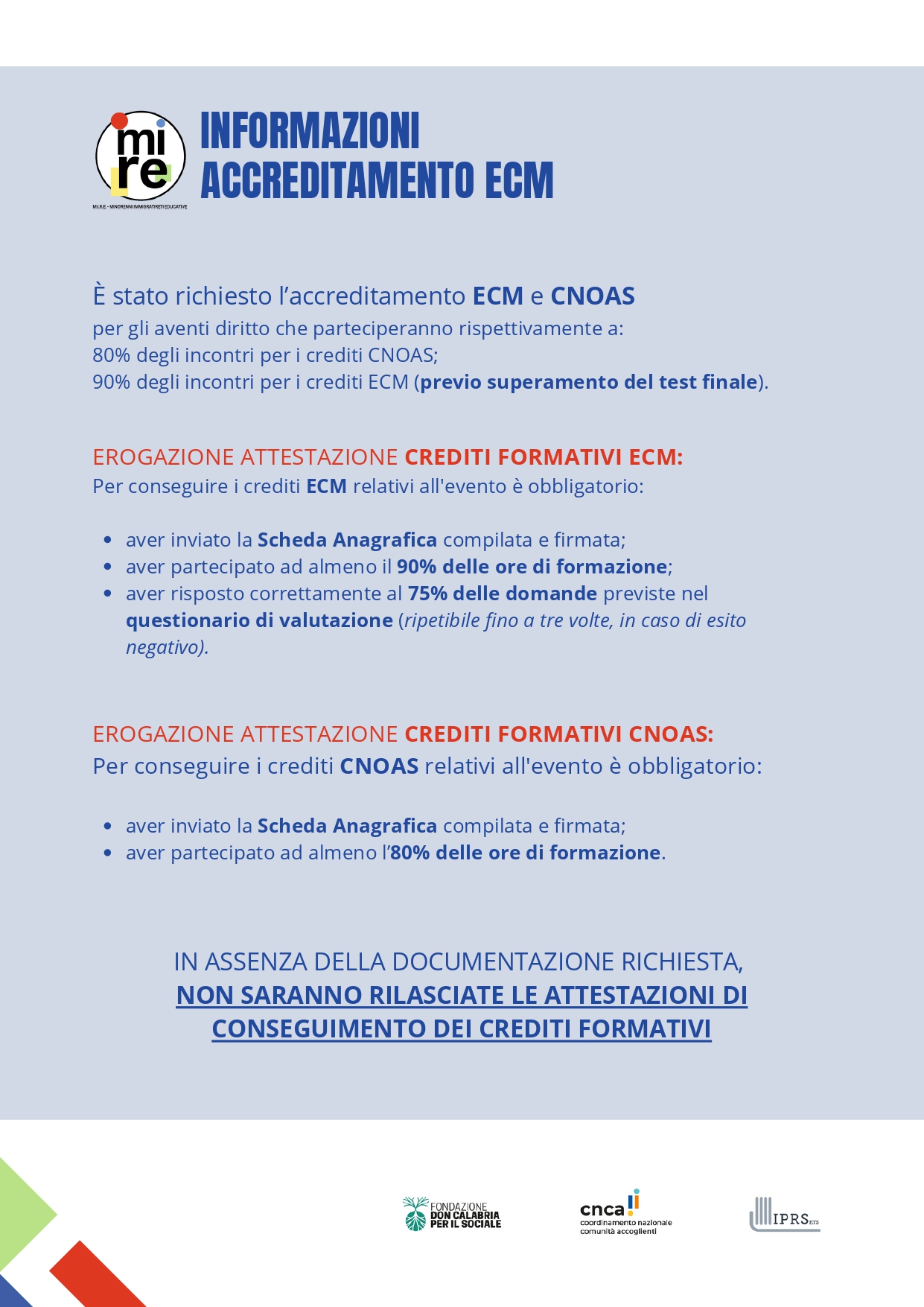 È stato richiesto l’accreditamento CNOAS per gli aventi diritto che parteciperanno all’80% degli incontri, seguirà nelle prossime ore una Ns mail con indicazione dei crediti riconosciuti.