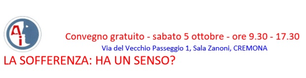 La Scuola Superiore di Specializzazione in Psicoterapia promuove il convegno gratuito intitolato “La sofferenza ha un senso?” che si terrà sabato 5 ottobre 2019 dalle ore 9.30 alle ore 17.30 presso la Sala Zanoni in via del Vecchio Passeggio n. 1 a Cremona.