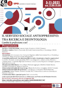 CROAS PIEMONTE – 5 novembre 2021 – EVENTO WEBINAR IL SERVIZIO SOCIALE ANTIOPPRESSIVO: TRA RICERCA E DEONTOLOGIA. Cambia la professione o no?