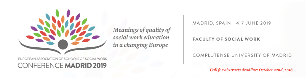 EASSW Conference Madrid 2019 – June 04-07-2018 – call for abstract scadenza 22 ottobre 2018 13 Ottobre 2018 Riceviamo e pubblichiamo. European Association of Schools of Social Work Faculty of Social Work – Universidad Complutense of Madrid EASSW Conference Madrid 2019 October 22nd Deadline for Abstracts Submission Submit EASSW Conference Madrid 2019* will take place on June 04-07. Abstracts for EASSW Conference Madrid 2019* should be submitted by October 22nd, 2018. You are invited to submit abstracts in one of the following categories: 1. Oral Paper presentation 2. E-Poster presentation 3. Symposium 4. Workshop For more information about about the conference, each of these categories, and submission guidelines, please visit the EASSW Conference Madrid 2019*. *If the link redirects to the website with the information in Spanish, you could change the language by clicking on the top-right menu named “idioma” Congreso Europeo de Escuelas de Trabajo Social, Madrid 2019 tendrá lugar entre el 4 y el 7 de Junio. Los resúmenes se han de presentar antes del 22 de Octubre del 2018. Puede presentar los siguientes tipos de propuestas: 1. Presentación oral de ponencia 2. Presentación de E-Poster 3. Simposio 4. Workshop Para más información sobre el Congreso, las temáticas, y otras fechas, por favor visite la web de Congreso Europeo de Escuelas de Trabajo Social, Madrid 2019. segreteria 13 Ottobre 2018 Articolo Precedente Segnalazione editoriale – Maggioli editore – Barbara Mazzardis – Difesa personale. Psicologia e strategia dell’autodifesa nelle aggressioni. Articolo Successivo II edizione MASTER IN TUTELA DEI MINORI Il trattamento Evidence Based Trento, gennaio 2019 – dicembre 2019