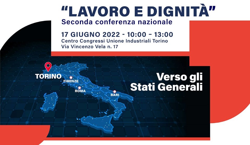 “Lavoro e Dignità” Seconda Conferenza Nazionale – Convegno e webinar 17 giugno 2022 ore 10-13 presso l’Unione Industriali di Torino
