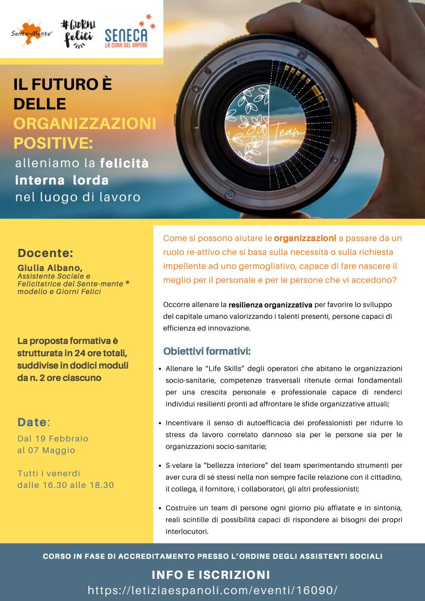 PER-CORSO FORMATIVO IN PARTENZA DEDICATO AL BINOMIO FELICITÀ E LAVORO.