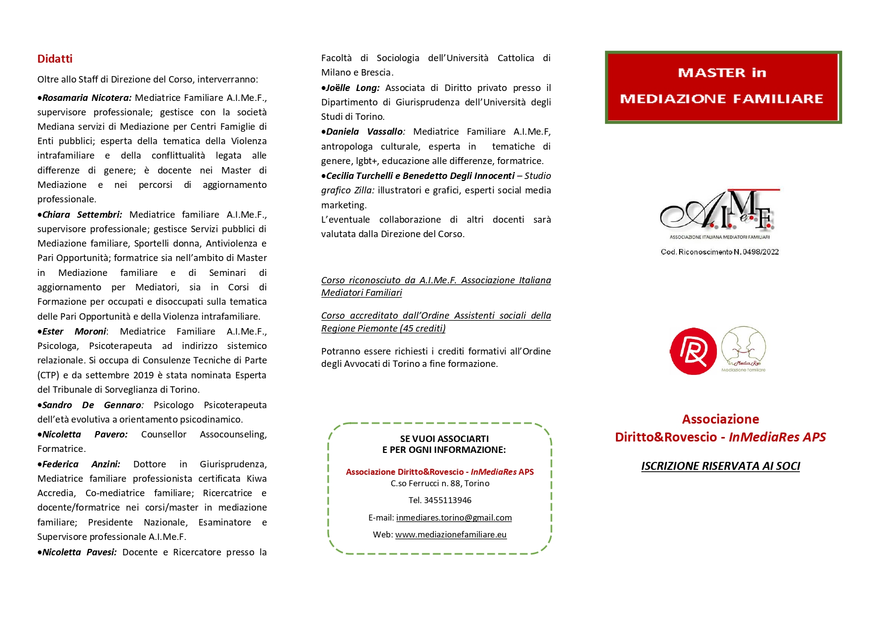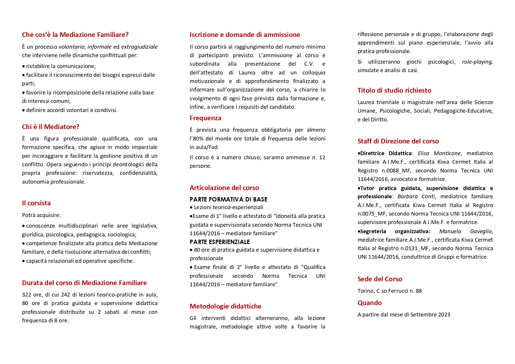 Il Master di Mediazione Familiare integra CONTENUTI TRADIZIONALI del percorso formativo con lezioni specifiche finalizzate all’acquisizione di COMPETENZE AGGIUNTIVE utili a facilitare l’inserimento professionale sia in ambito pubblico che privato, offrendo la conoscenza su: