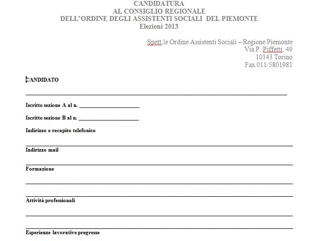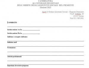 Modulo per candidatura Consiglio Piemonte