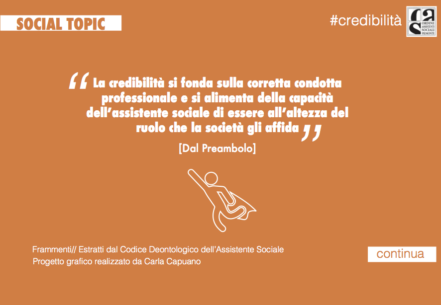 #PRIMO TOPIC: CREDIBILITÀ – Progetto Frammenti del Codice Deontologico dell’Assistente Sociale – in vigore dal 1 giugno 2020
