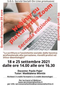 S.O.S. on line organizza il webinar “La scrittura e l’assistente sociale: dalla tecnica professionale alla narrazione, risvolti pratici ed etico-deontologici”.